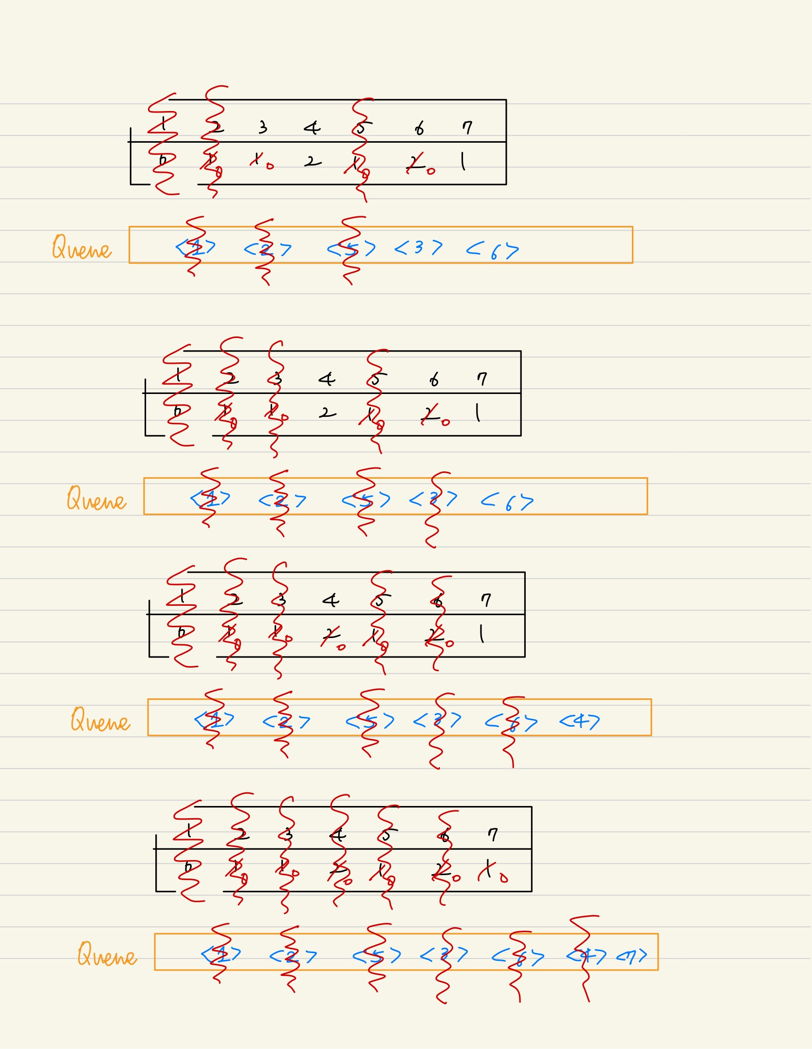 - 새롭게 진입차수가 0이 된 노드를 큐에 넣음